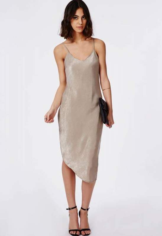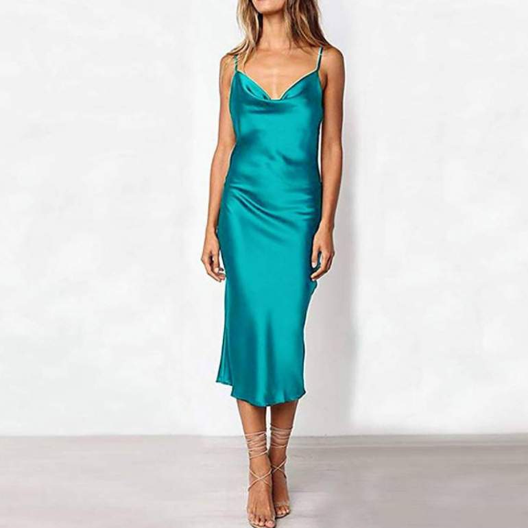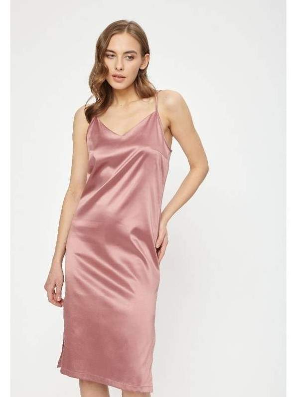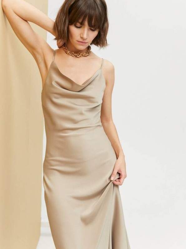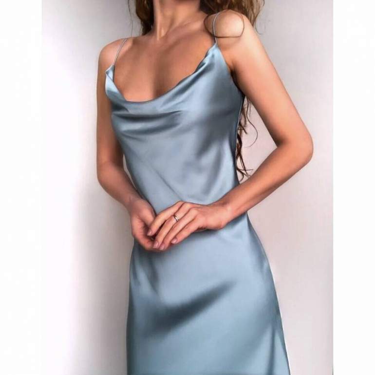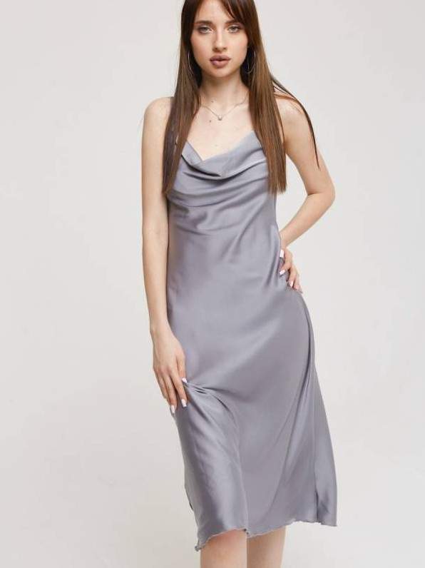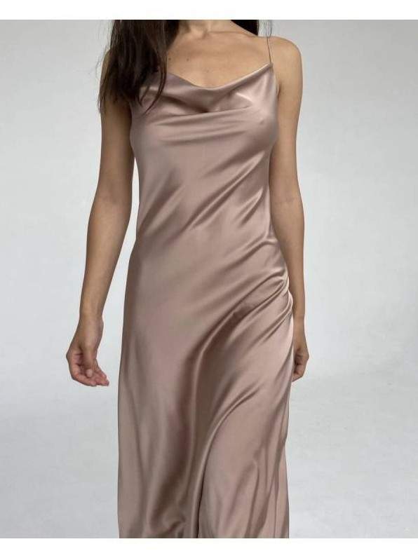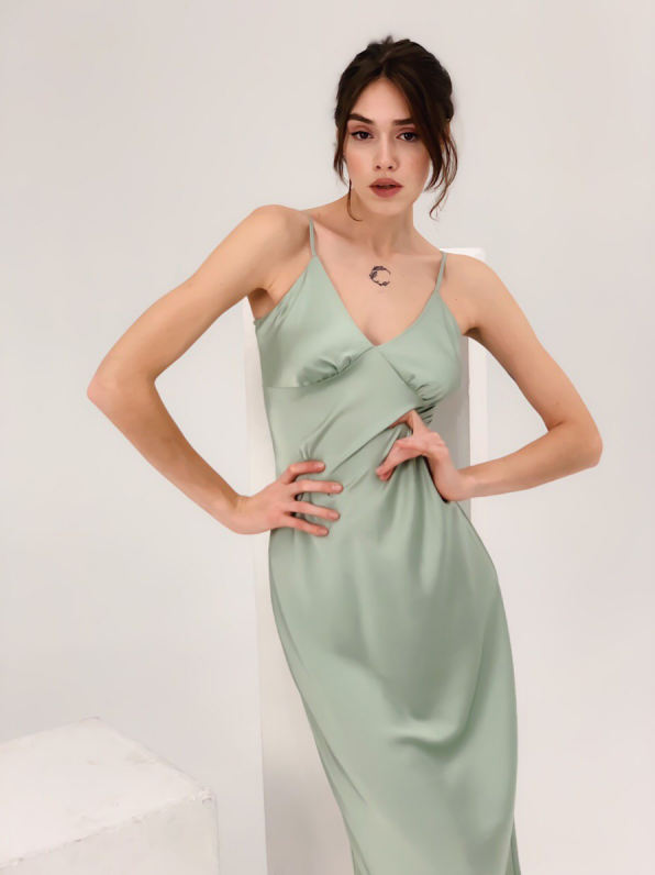 Атласное платье на бретельках.