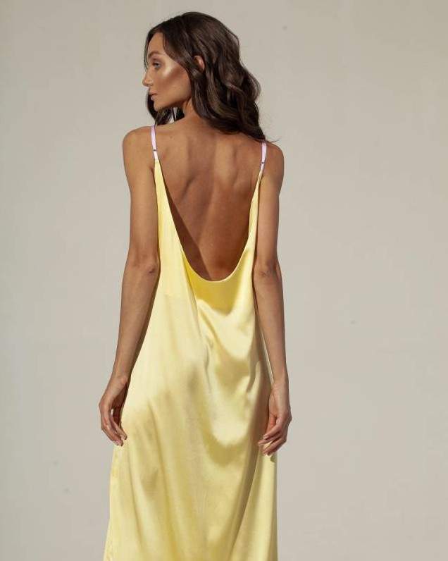 Шелковое платье с открытой спиной.
