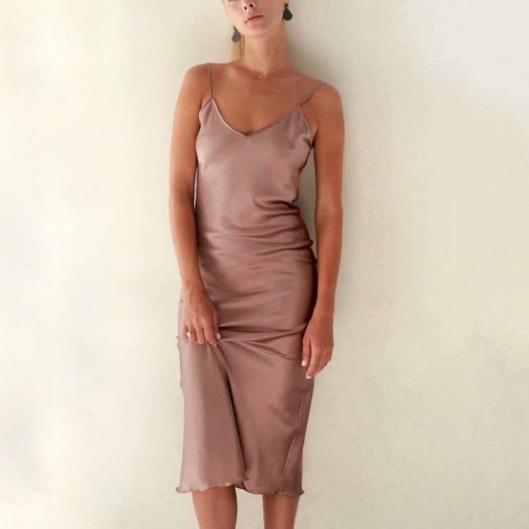 Шёлковое платье на бретелях.