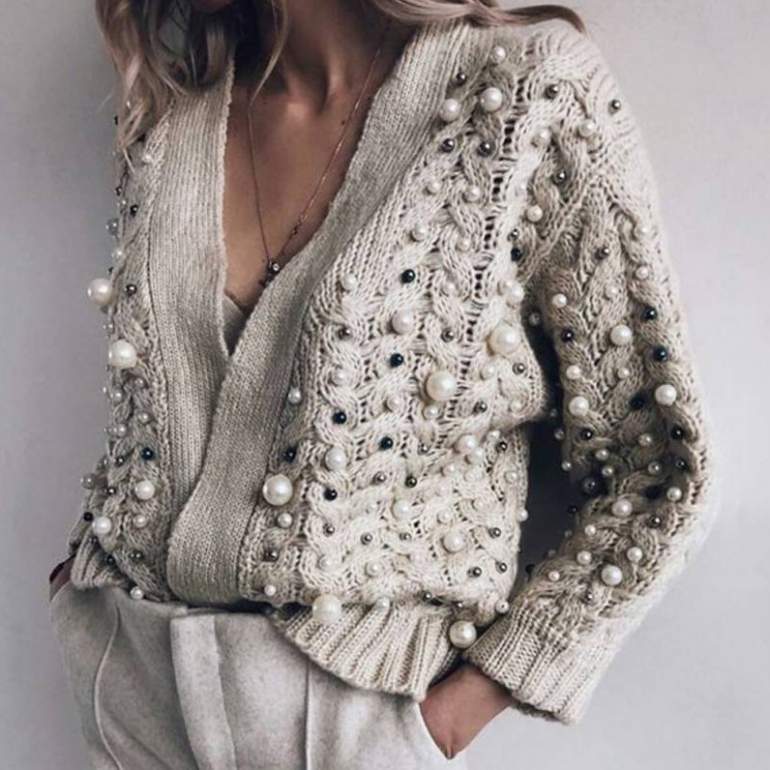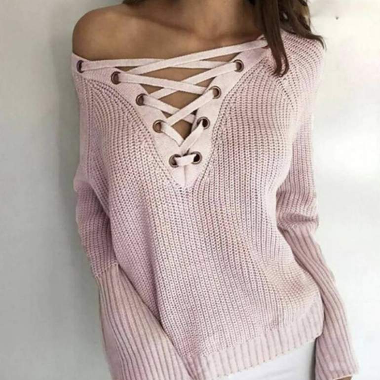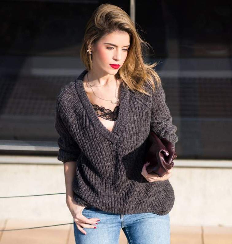 Вязаные свитера с глубочайшим вырезом.