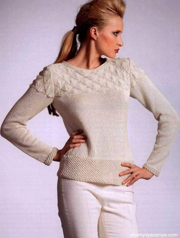 Джемпер дамский спицами.