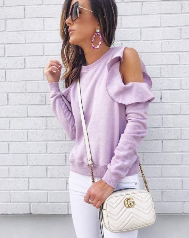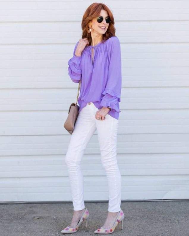 Сиреневая кофта образы.