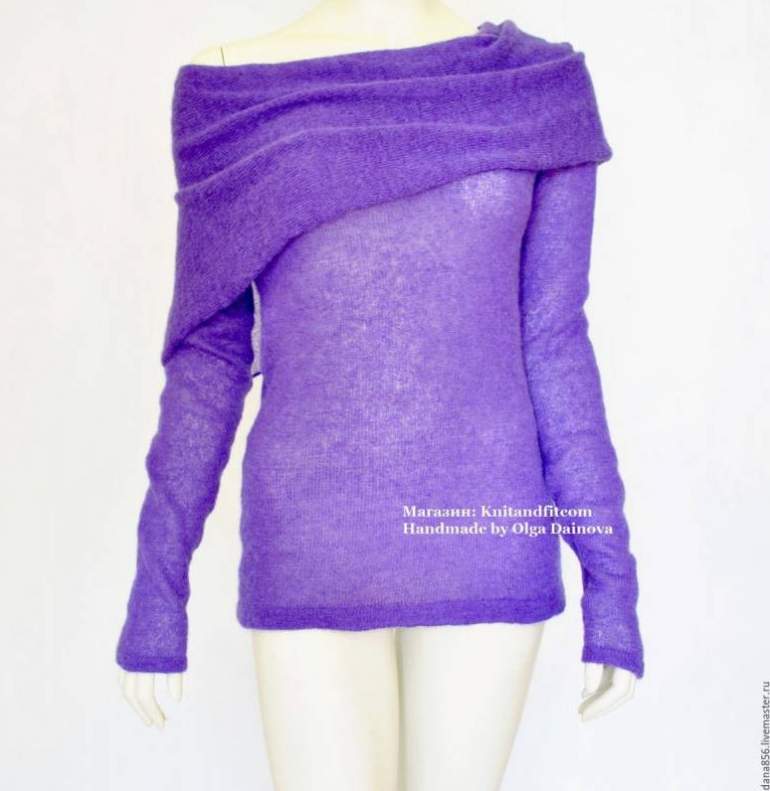 Кофта с открытыми плечами фиолетовая.