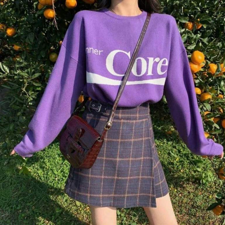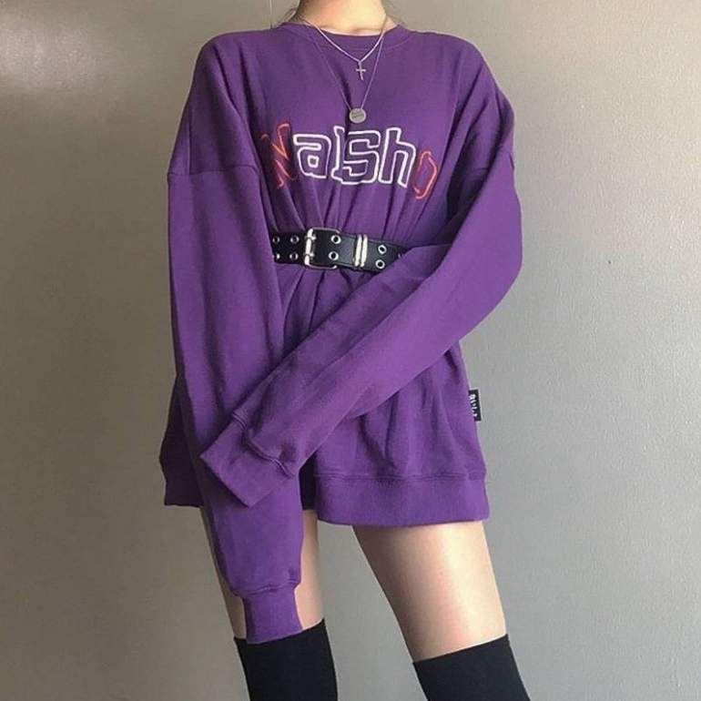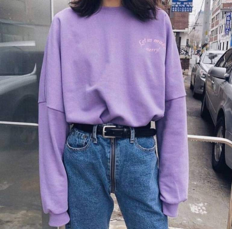 Фиолетовый свитшот образ.