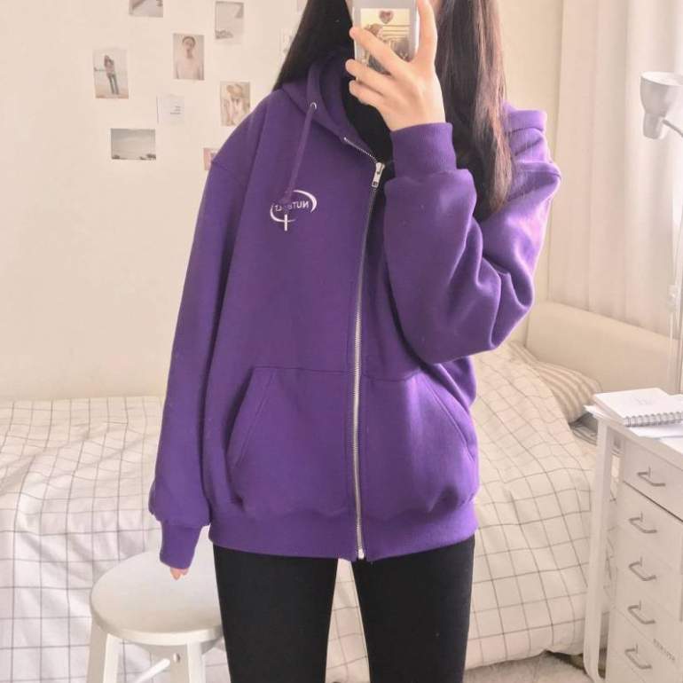 Фиолетовое худи оверсайз.
