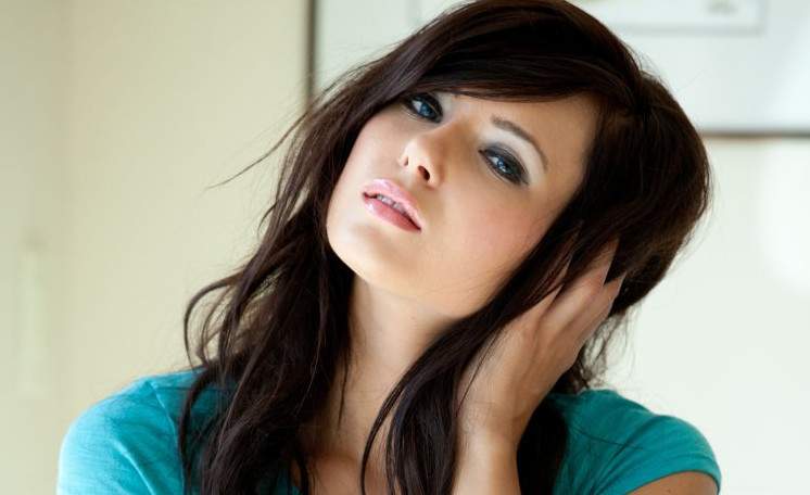 Эротика с брюнеткой с коричневыми очами в белье.