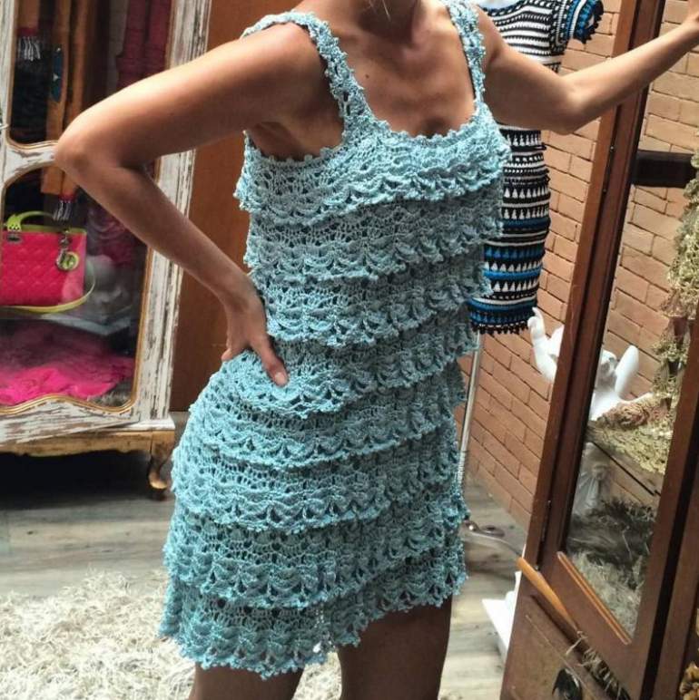 Вязаные красивые платья крючком.