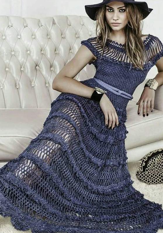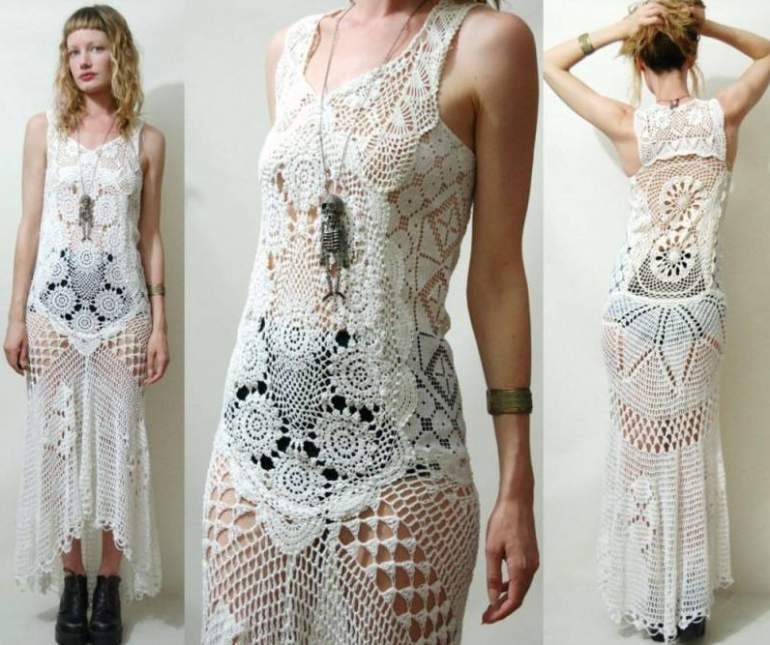 Платье крючком в стиле бохо.