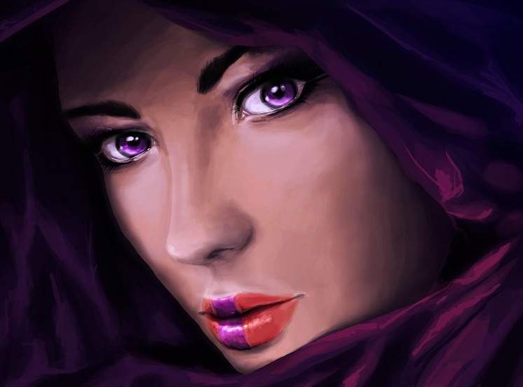 Милая женщина с фиолетовыми очами.