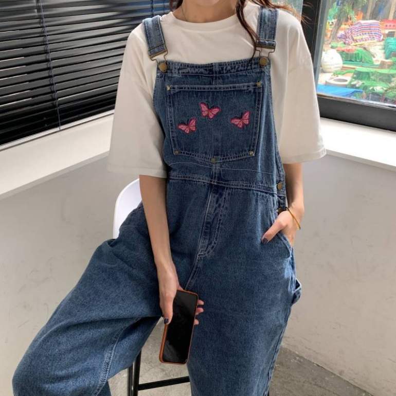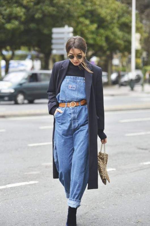 Джинсовый комбинезон в стиле 90-х.