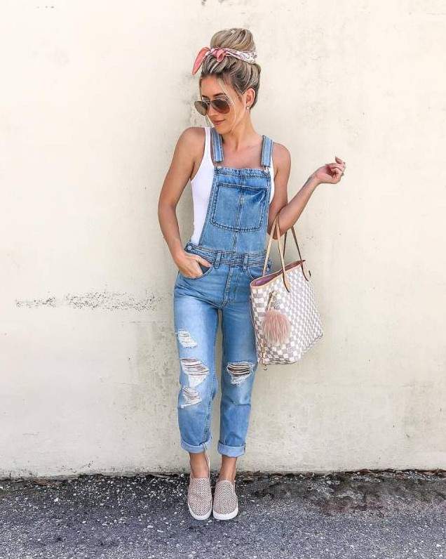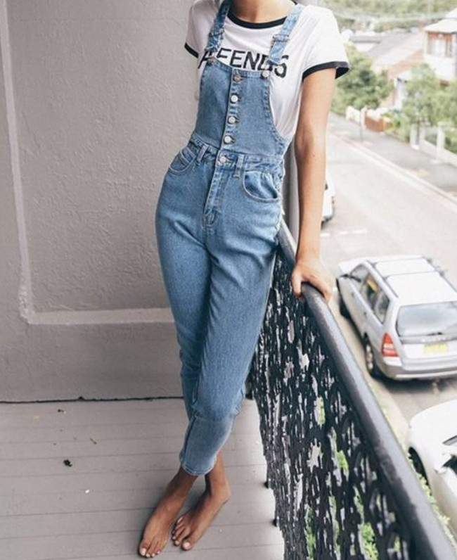 Образы с джинсовым комбинезоном.