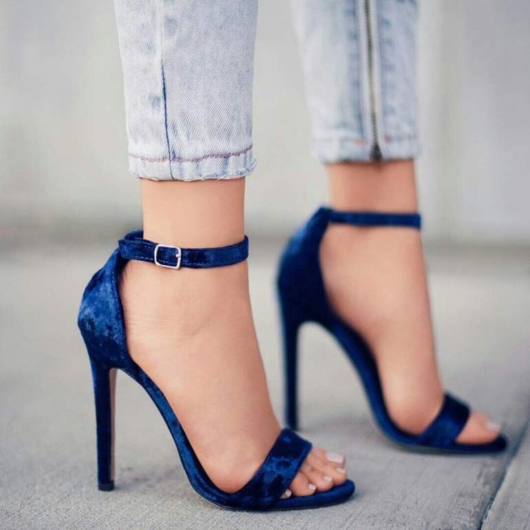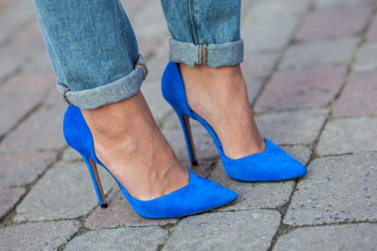 Голубые туфли на шпильке.