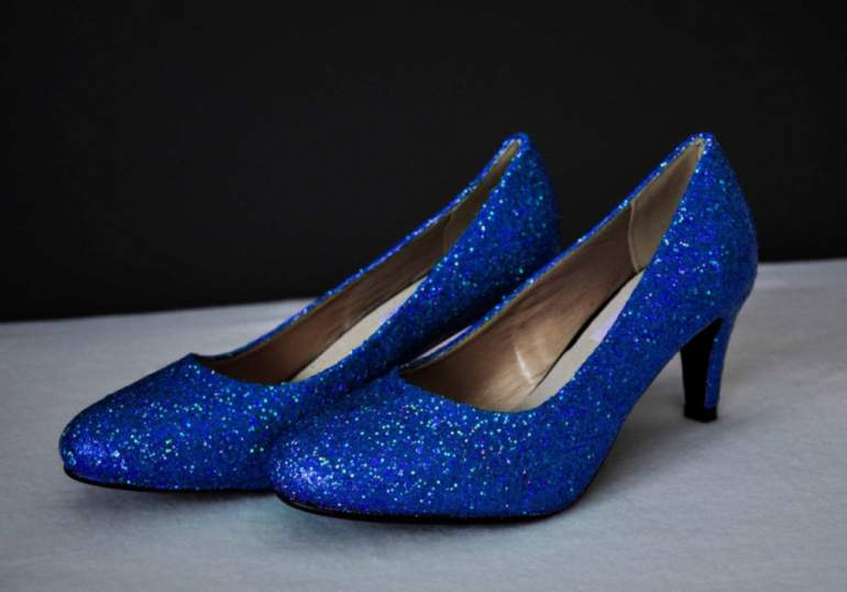 Голубые блестящие туфли.