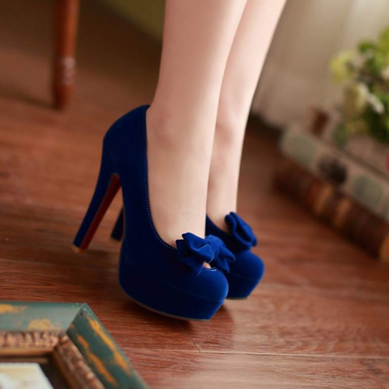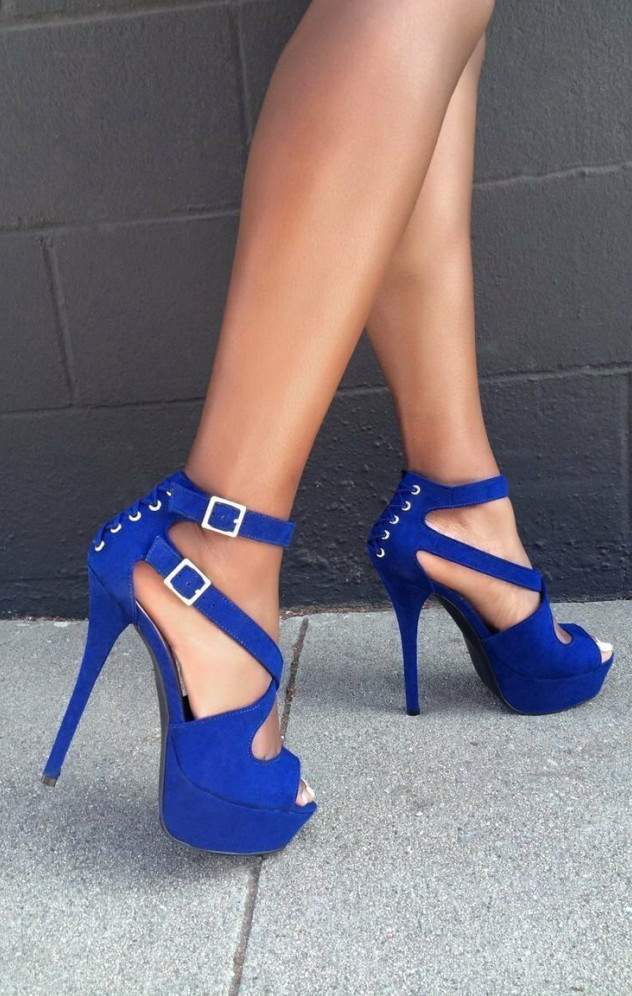 Голубые каблуки высочайшие.