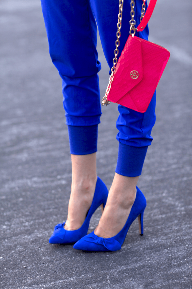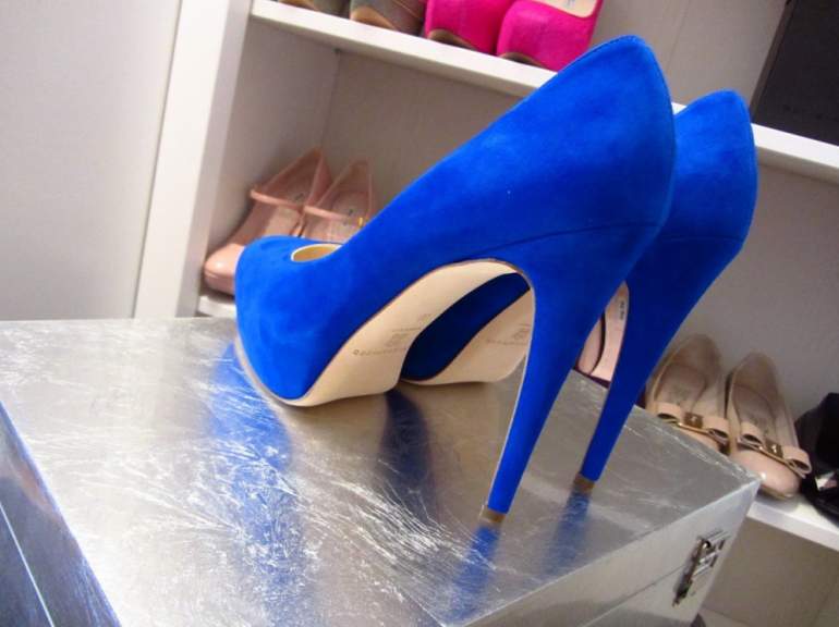 Ярко голубые туфли.