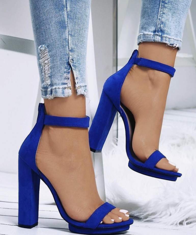 Голубые туфли на каблуке.
