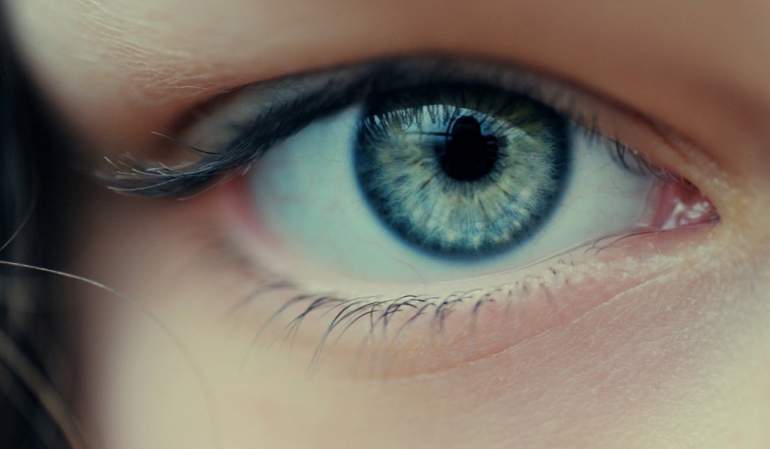 Глаз в голубом фоне 12 летней девушки.