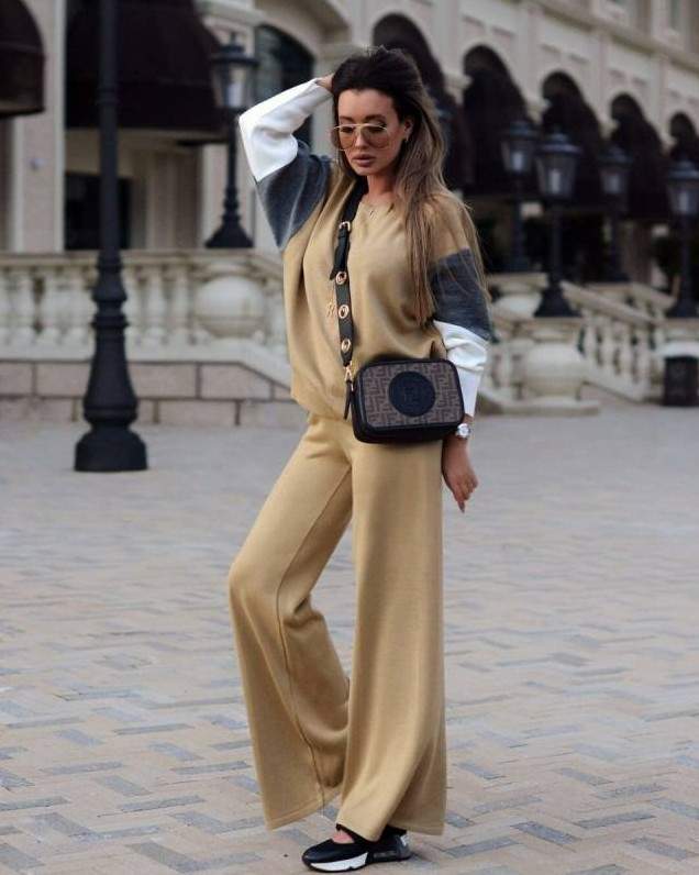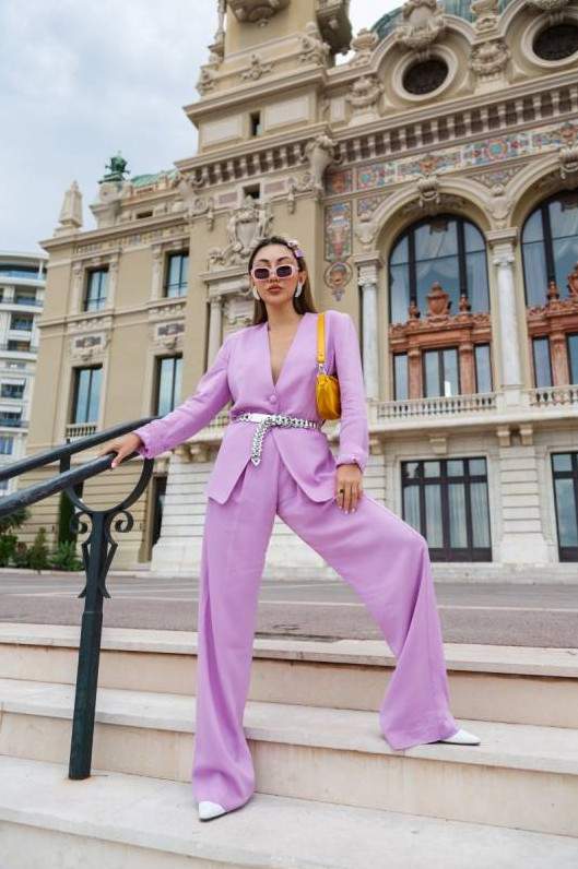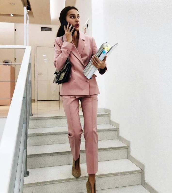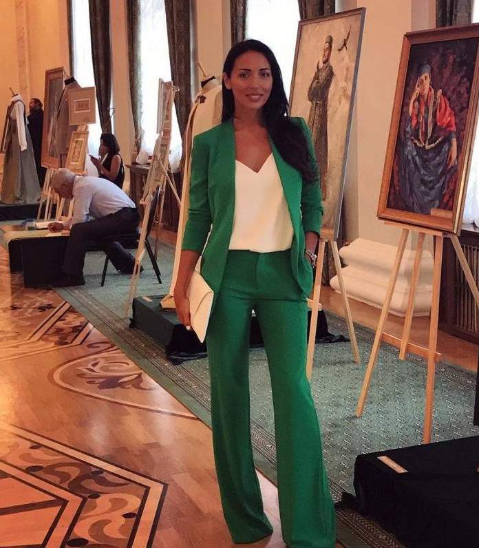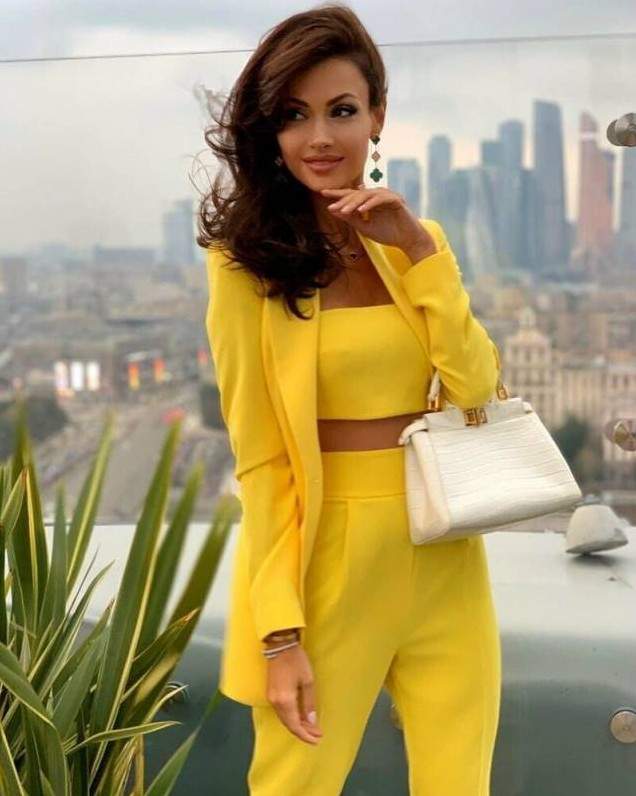 Виктория Лопырева в брючном костюмчике.