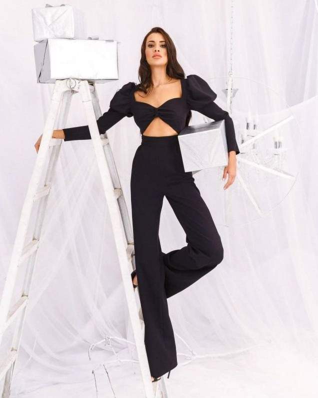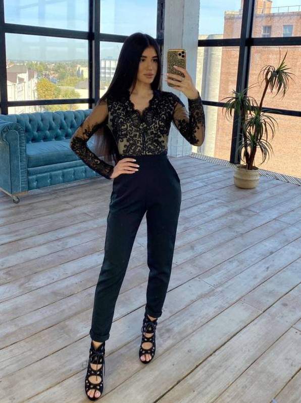 Темный комбинезон на новый год образ.