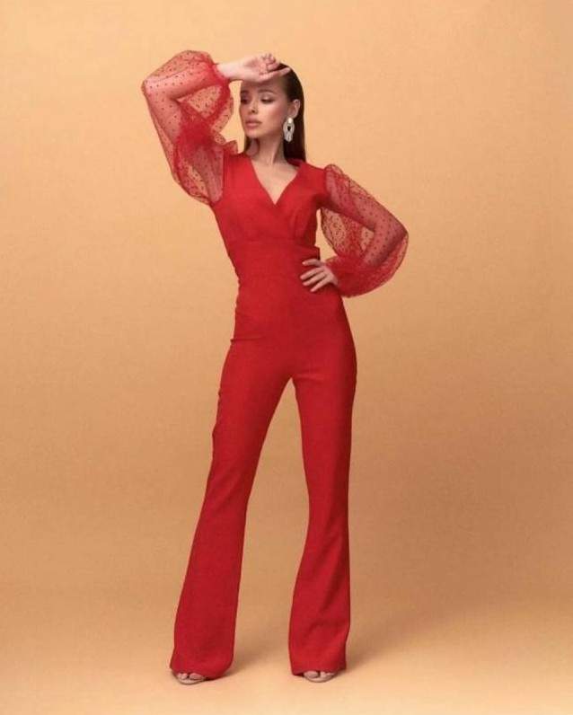 Очень красный комбинезон Zara.