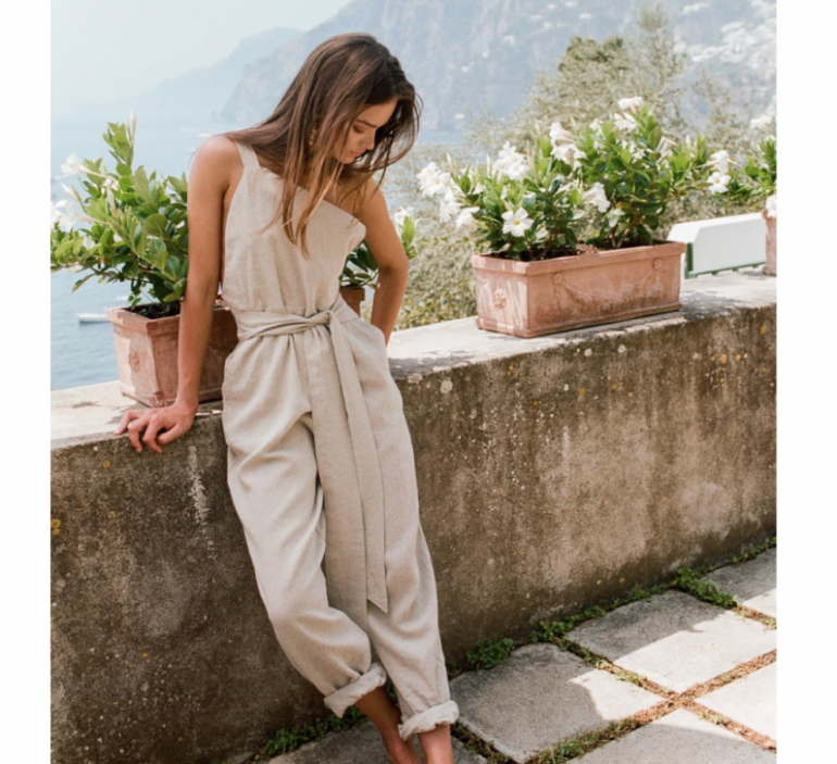 Девушка красавица в льняном платье.