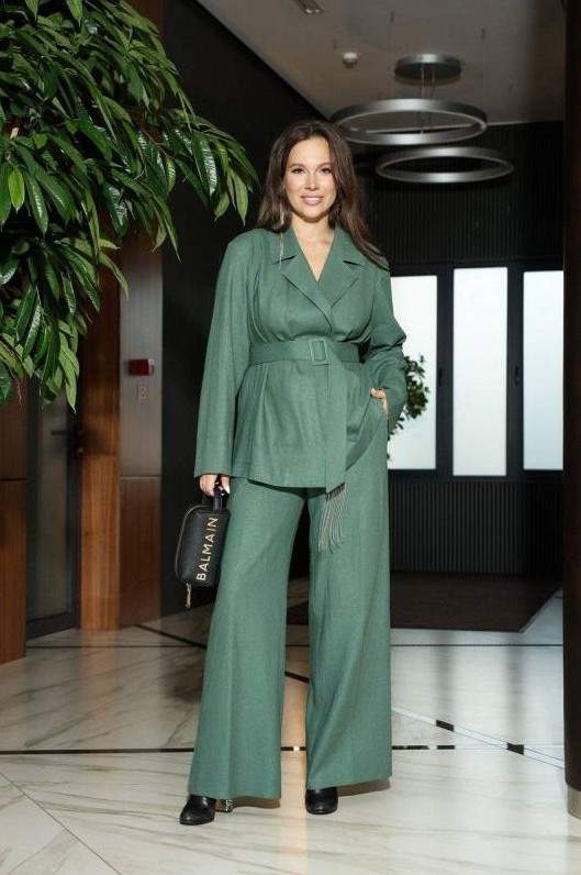 Нита Кузьмина в брючном костюмчике.