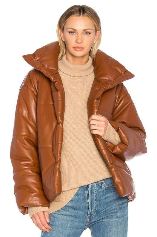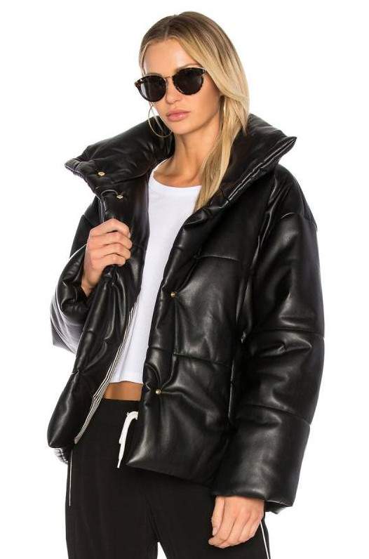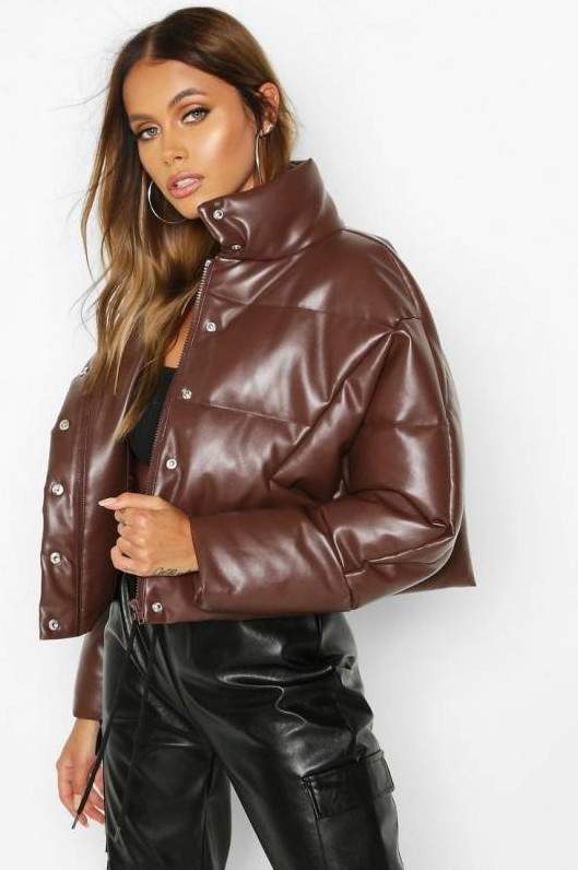 Faux Leather Puffer Jacket.
