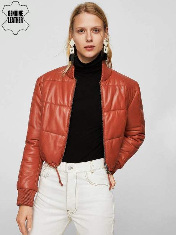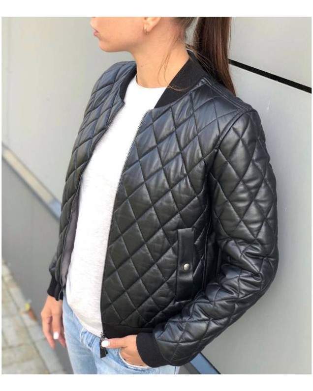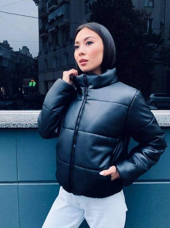 Кожаная дутая куртка женская.