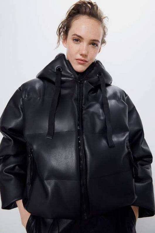 Zara Vinyl Puffer Jacket.
