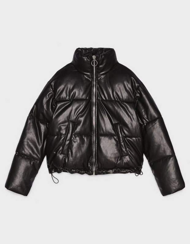 Bershka Puffer куртка чёрная эко кожа.