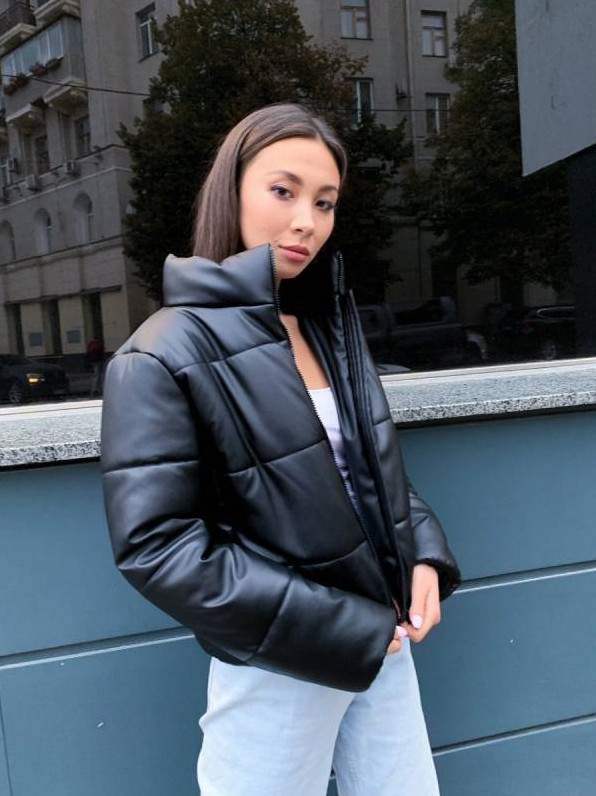 Дутая куртка из экокожи.