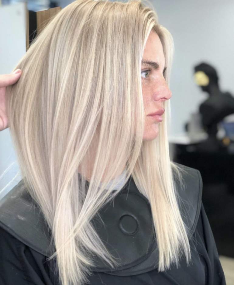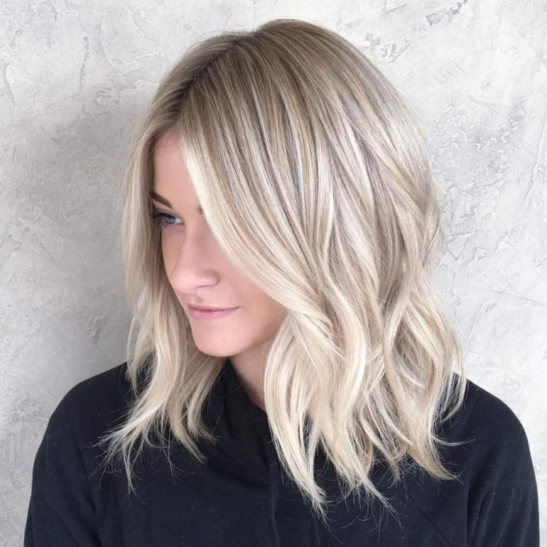 Супер пристижное окрашивание для блондинок на средние волосы.