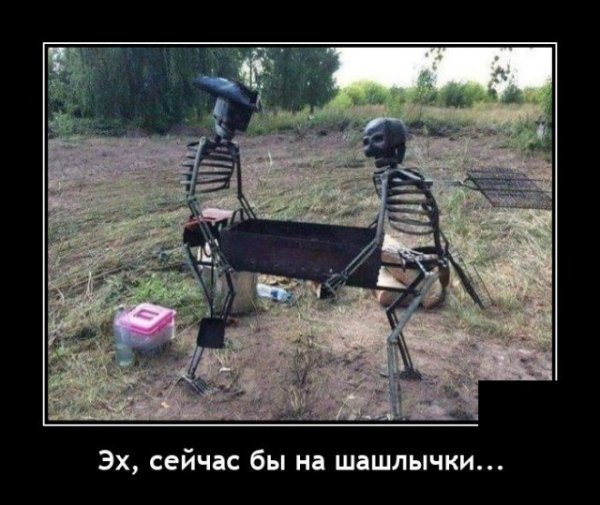 Демотиваторы про шашлык и любимую машину Приколы 22-10-2020, 11:00 489 Красивый мангал со скелетами. 😵 Началась новая неделя. Прикол про табло в зеркале. Раковина в кабинете стоматолога. Бухие собаки и алкаш.