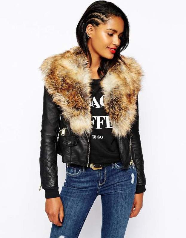 Кожаная куртка River Island с меховым воротником.