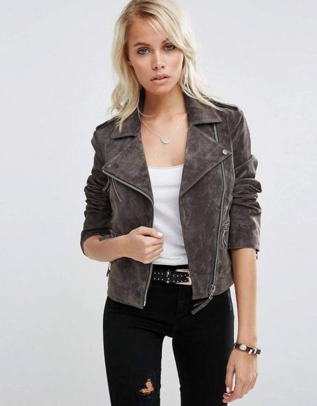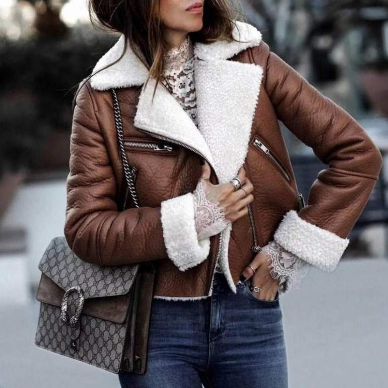 Коричневая кожаная куртка женская.