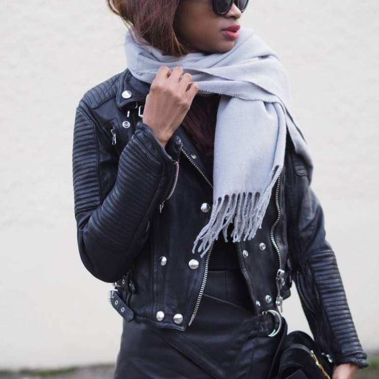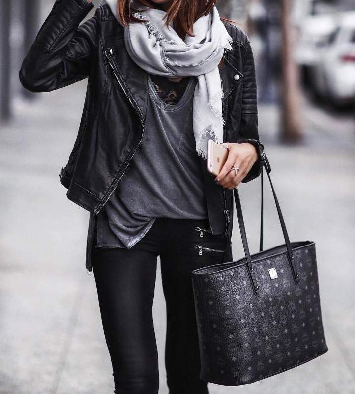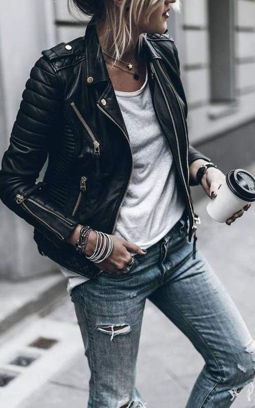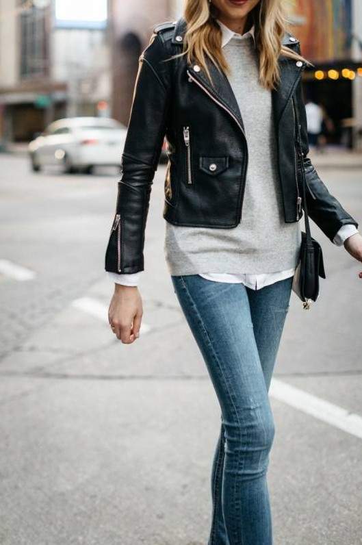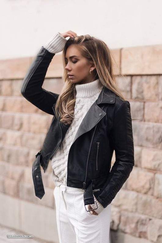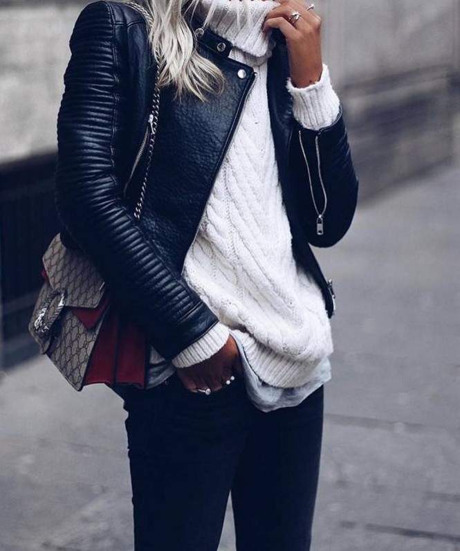 Свитер и кожаная куртка.
