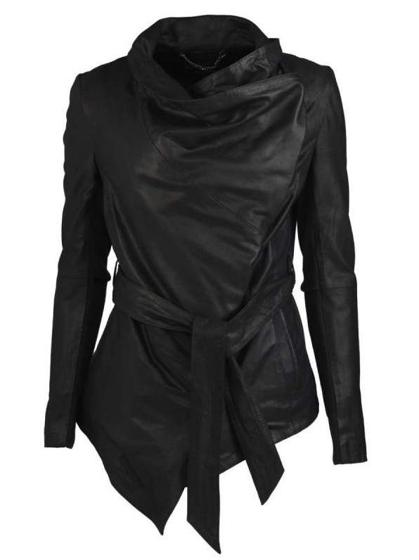 Кожаная куртка с воротом хомутом.