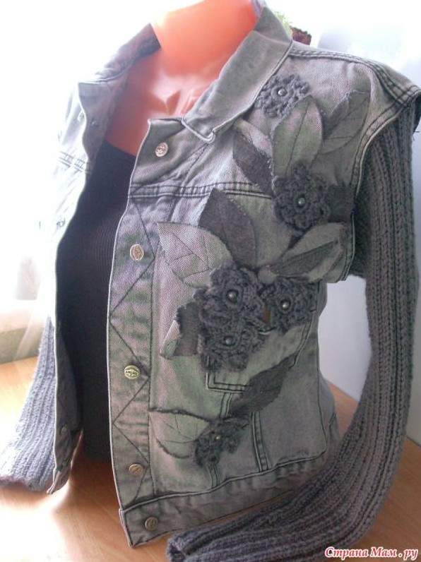 Джинсовая куртка с кожаными рукавами женская.