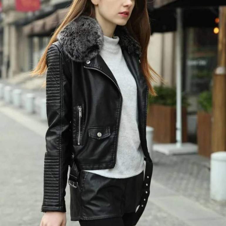 Кожаная куртка с воротником.