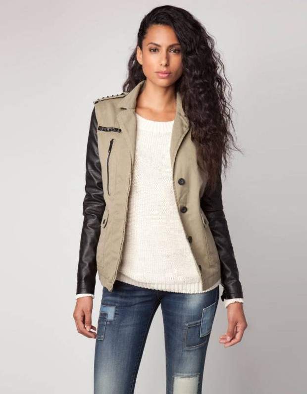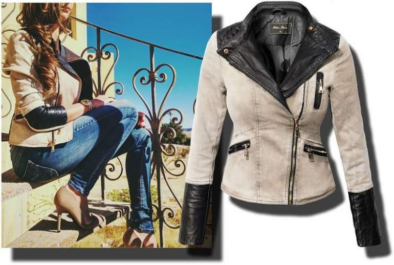 Куртка из кожи и ткани.