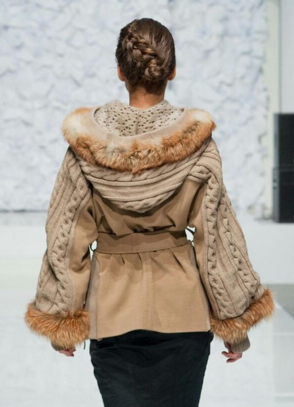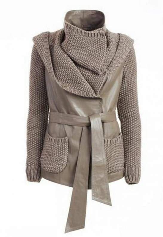 Вязаные комбинированные пальто.