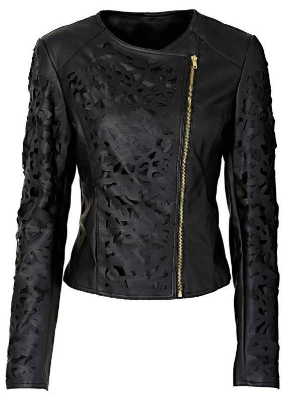 Кожаная куртка с узорами.