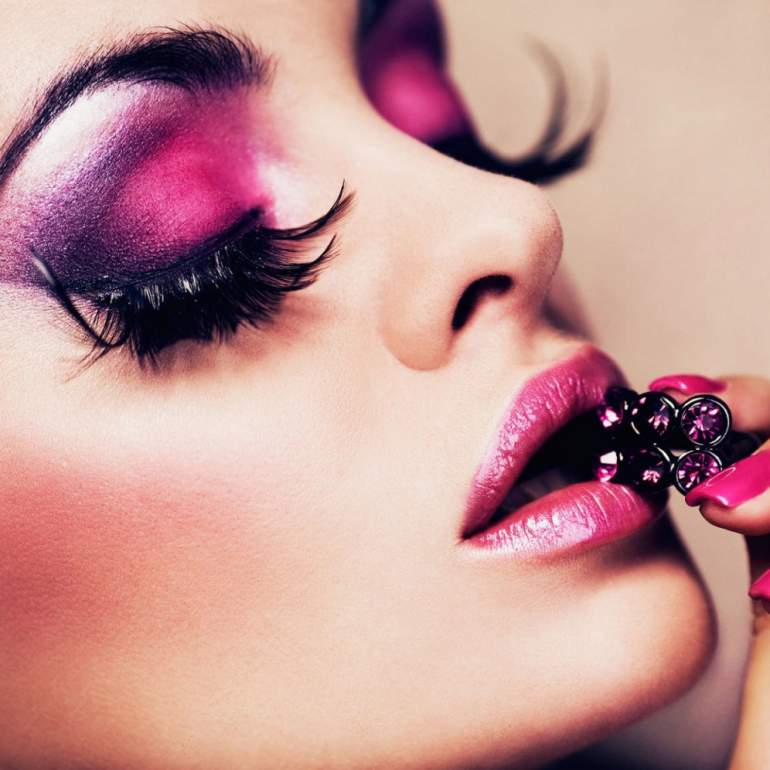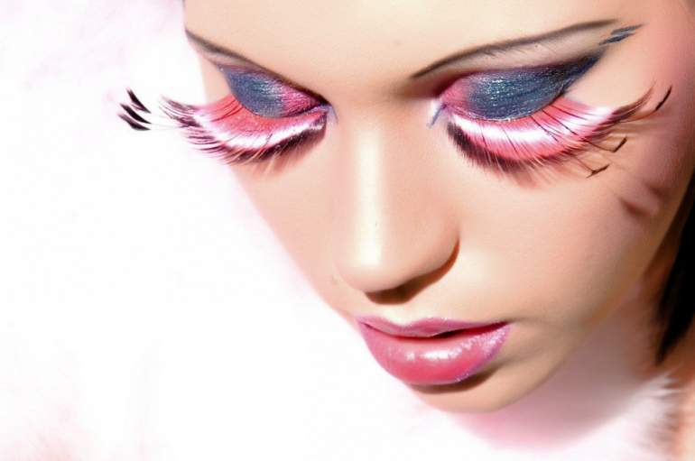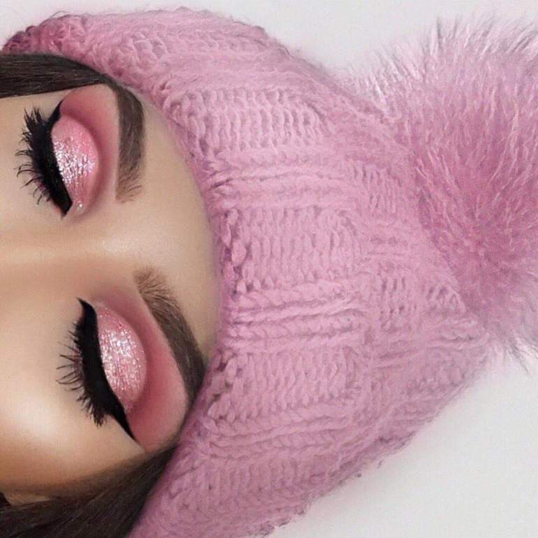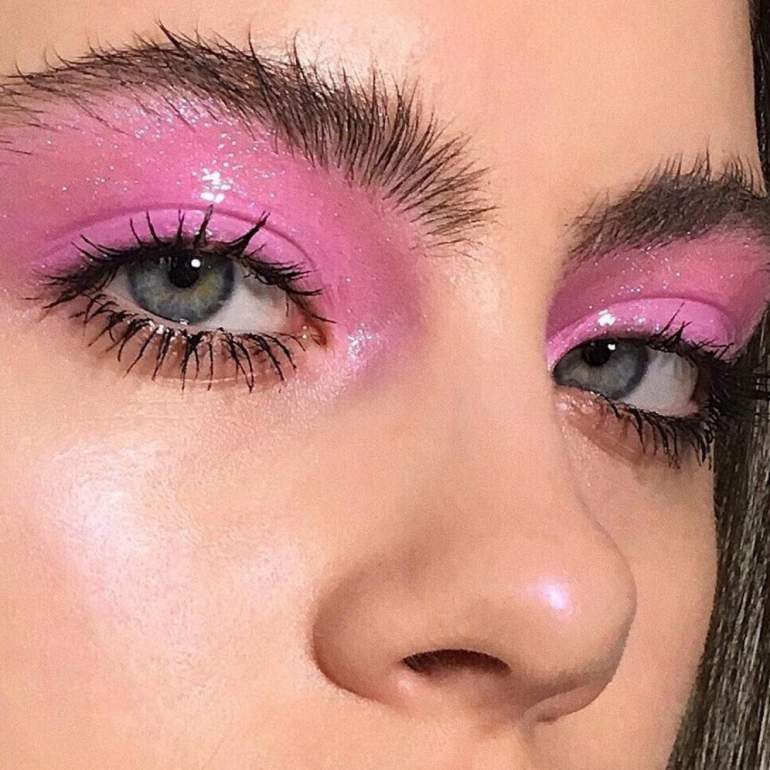 Мейкап с розовыми ресницами.