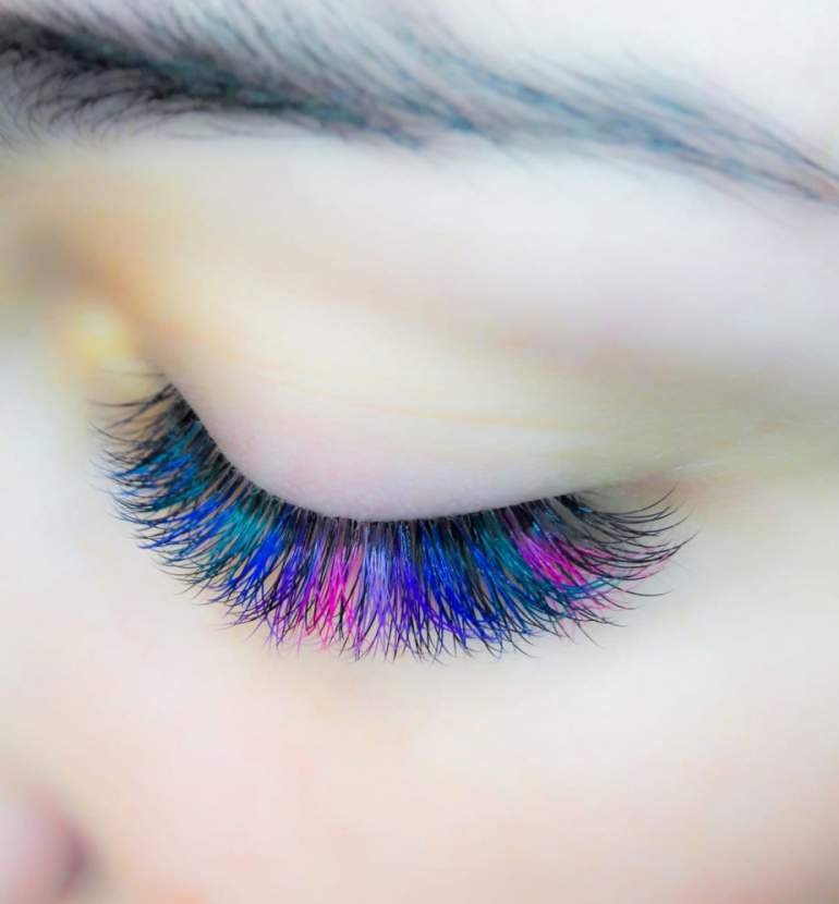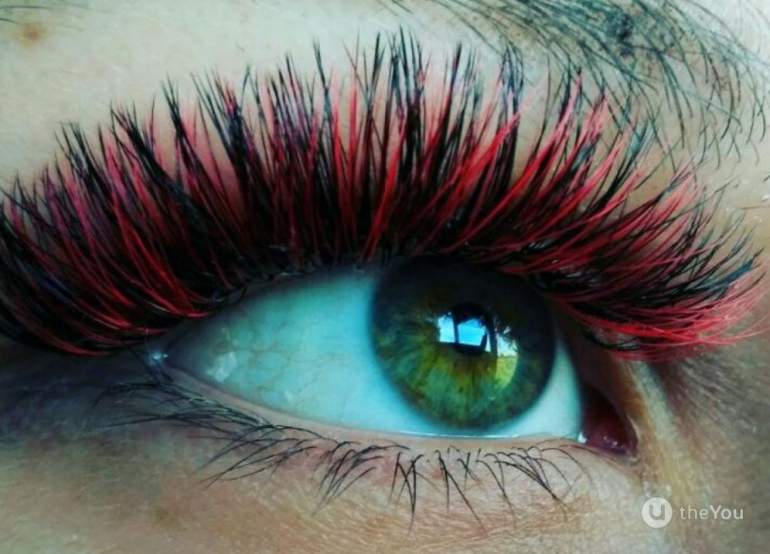 Цветное наращивание ресниц.