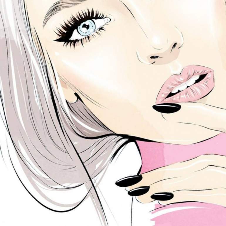 Нарисованная девушка красавица с ресницами.