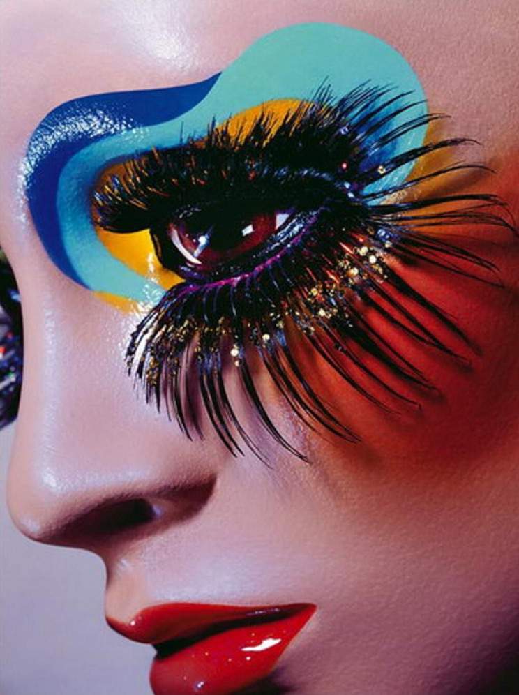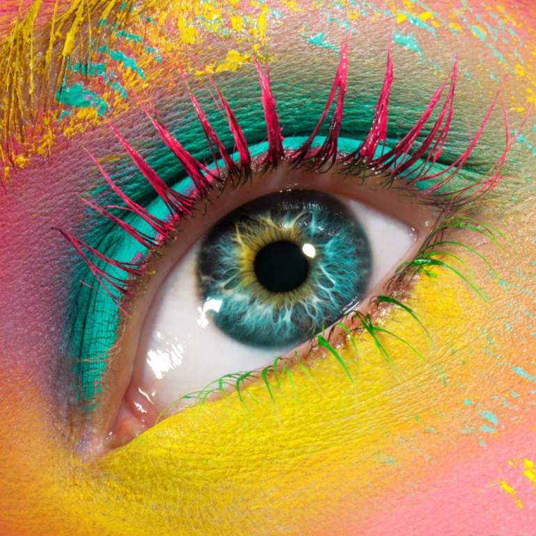 Девушка красавица с цветными ресницами.