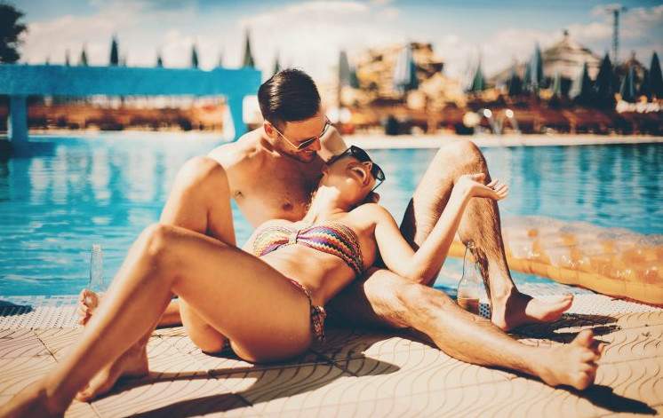 Эротика с брюнеткой на отдыхе.