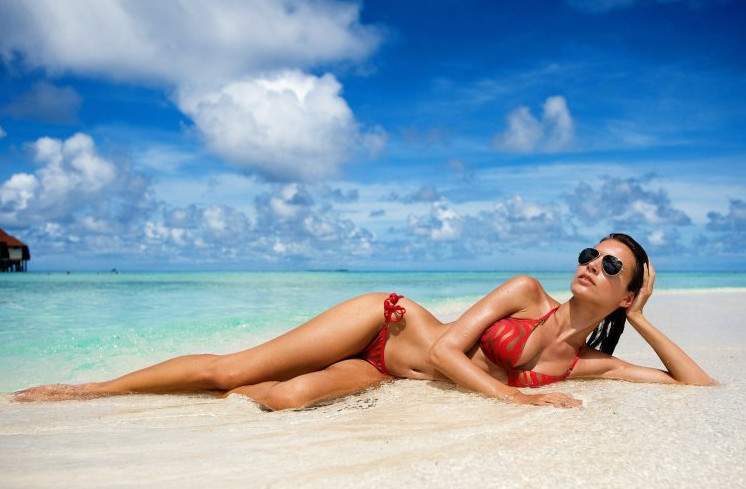 Мальдивы красивая девушка на пляже.