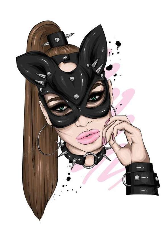 Красивая девушка в маске кошки арты.