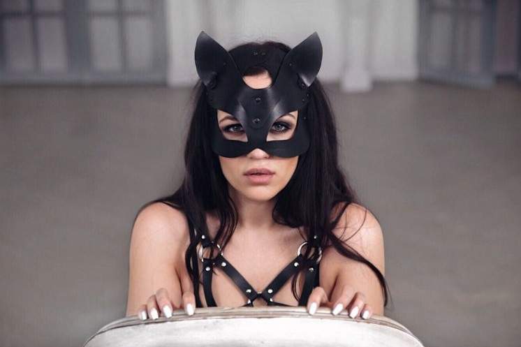 Эротика с брюнеткой в маске кошки.